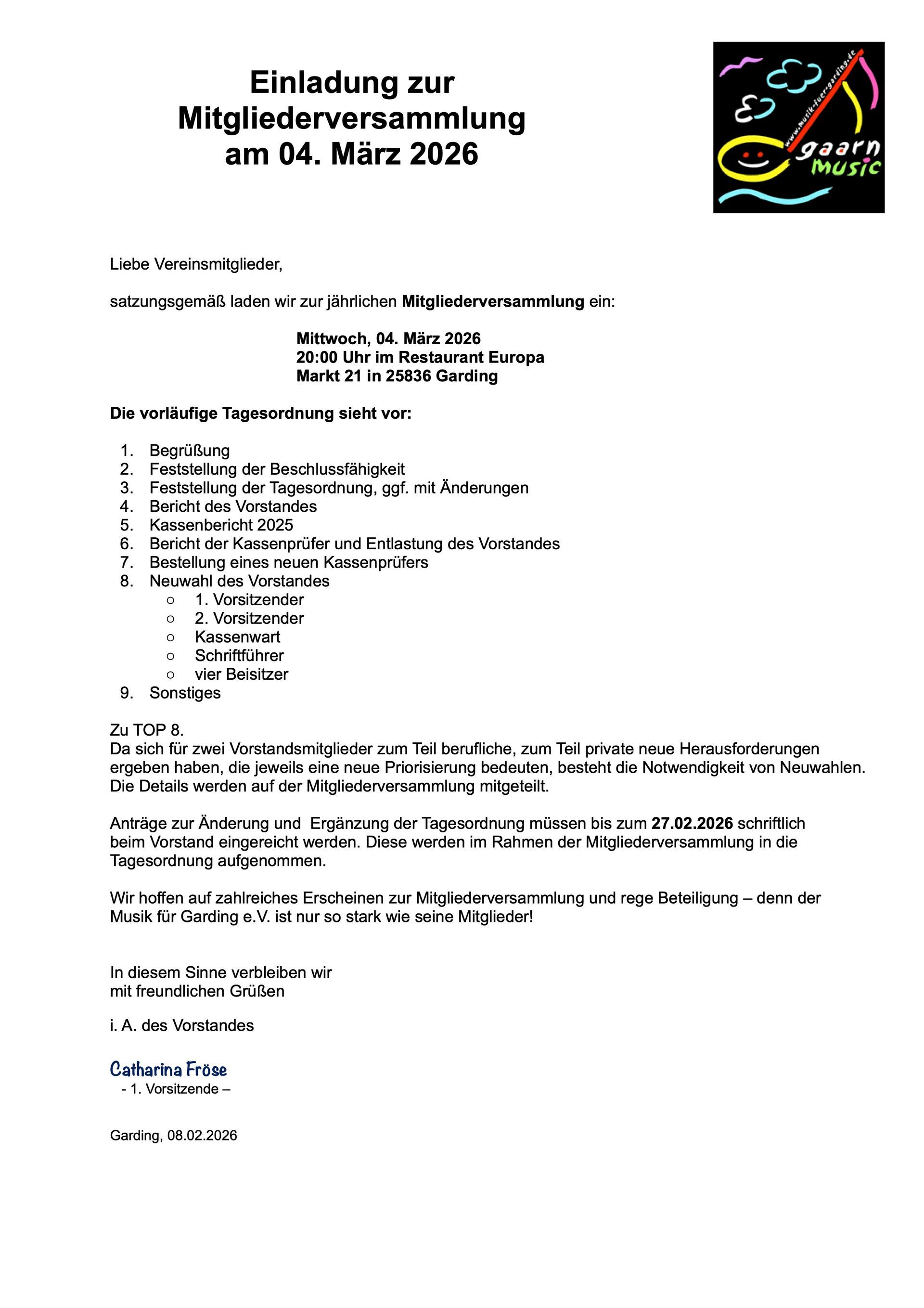 Liebe Grüße vom Vorstand des Musik für Garding e.V.